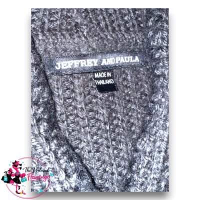 £4.00Jeffrey and Paula Charcoal Grey Wool Blend Chunky Knit Hooded Toggle Cardigan – Size 14. Fair used condition – please see the ‘Flaws’ section below for details. This is a cozy, heavyweight charcoal grey cardigan featuring a warm hood and stylish toggle fasteners. It has beautiful black contrast blanket-stitching along the edges and cuffs, giving…