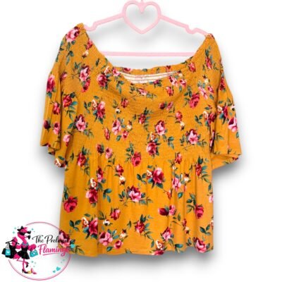 Rickis Mustard Floral Off Shoulder Top Boho Smocked Peplum Blouse Summer Top