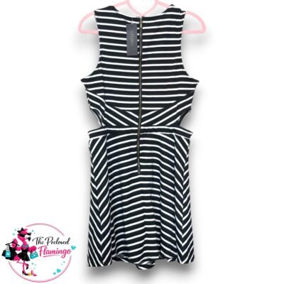Weavers Black White Striped Skater Dress Sleeveless Cut Out Waist Fit Flare Dress
