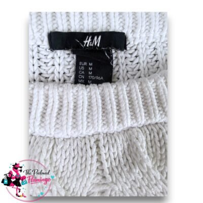 H&M White Cable Knit Jumper Chunky Knit Long Sleeve Crew Neck Cosy Top – UK M