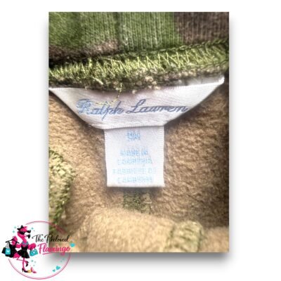 Ralph Lauren Baby Camo Joggers Polo Logo Fleece Lined Elastic Waist Trousers – 9 Months. These adorable Polo Ralph Lauren joggers feature a classic camouflage print with a bold logo detail on the leg. Made from soft cotton blend fabric with a cosy fleece lining, they are perfect for keeping little ones comfortable and warm….