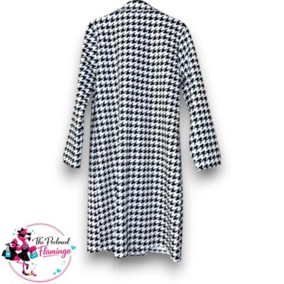 SHEIN Black & White Houndstooth Longline Blazer Jacket – Lightweight Double Breasted – Size XL UK 14 Condition: Preloved – Excellent Condition Stylish SHEIN black and white houndstooth longline blazer jacket featuring a classic double-breasted front with decorative gold-tone buttons. This lightweight jacket has a tailored blazer-style collar and structured longline fit, making it perfect…