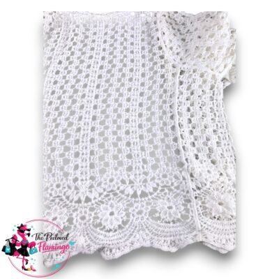 White Crochet Lace Cardigan Boho Open Front Lightweight Festival Beach Cover Up – One Size (fits UK 8-12). Never worn, excellent condition. Beautiful lightweight crochet cardigan with a delicate lace design and scalloped hem detailing. Perfect for layering over dresses, bikinis or casual outfits for that effortless boho look. Fit: One size – best fit…