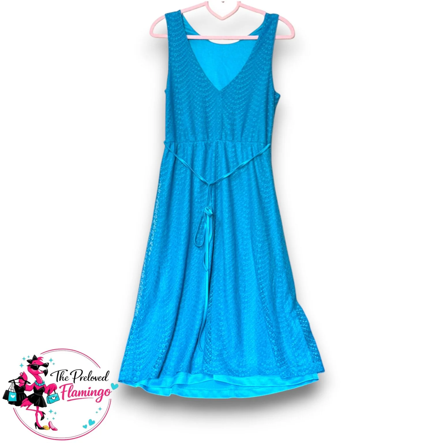 ASOS Turquoise Blue Lace Midi Dress – Sleeveless V Neck Tie Waist Summer Dress – Size UK 10