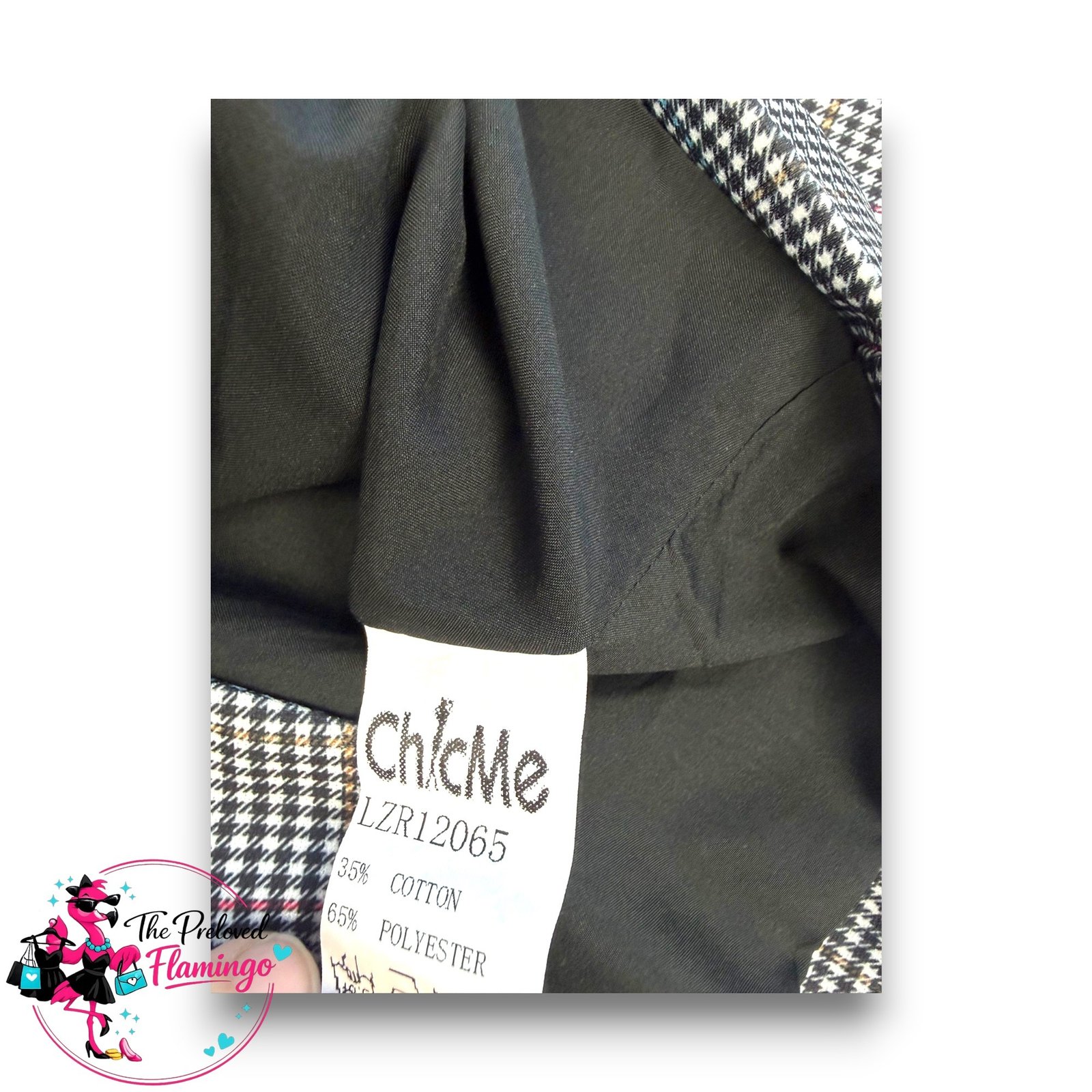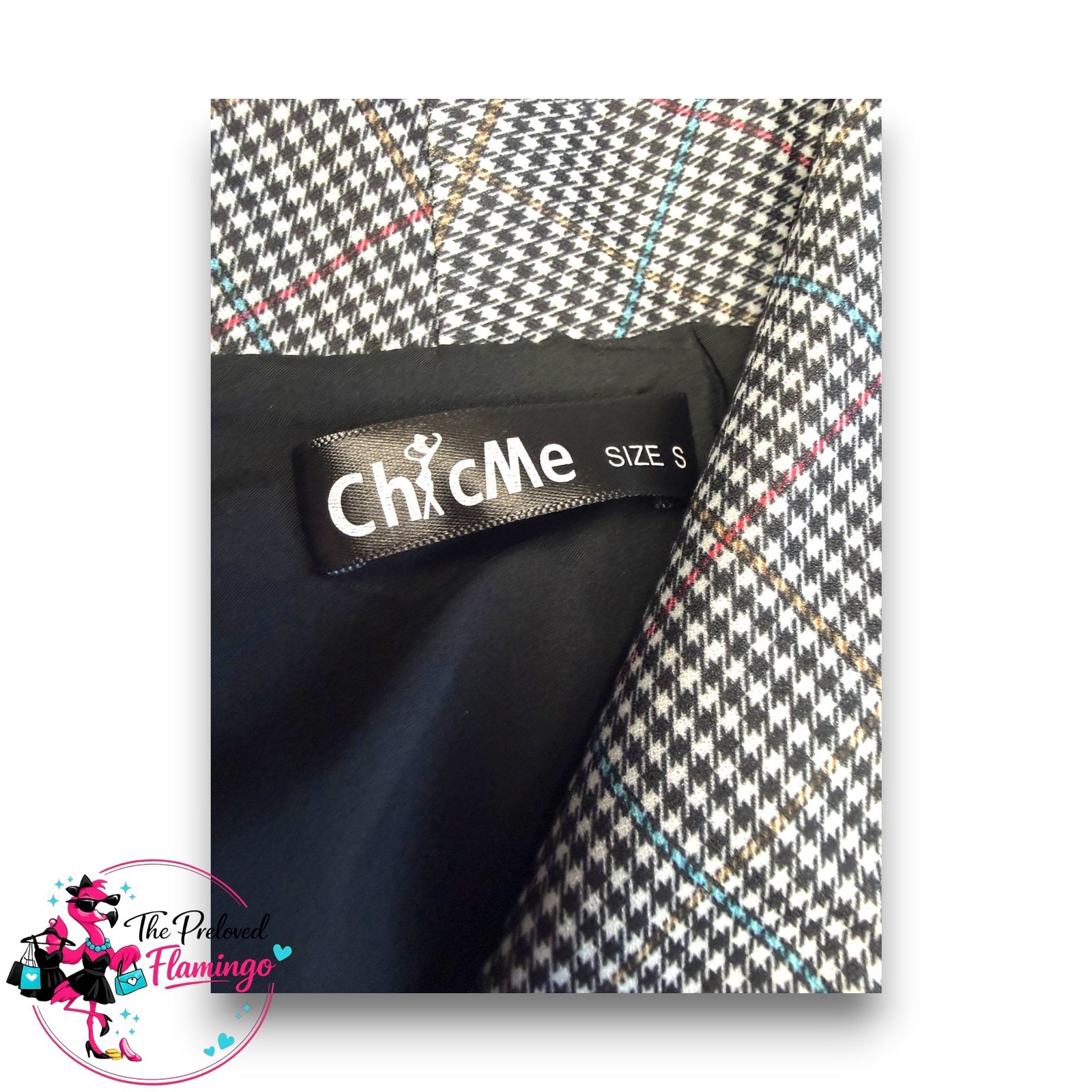 ChicMe Black White Check Blazer Trousers Suit Set Tailored Smart Co Ord Drawstring – Size S (UK 8-10 / US 4-6 / EU 36-38). Pristine condition with no visible flaws.