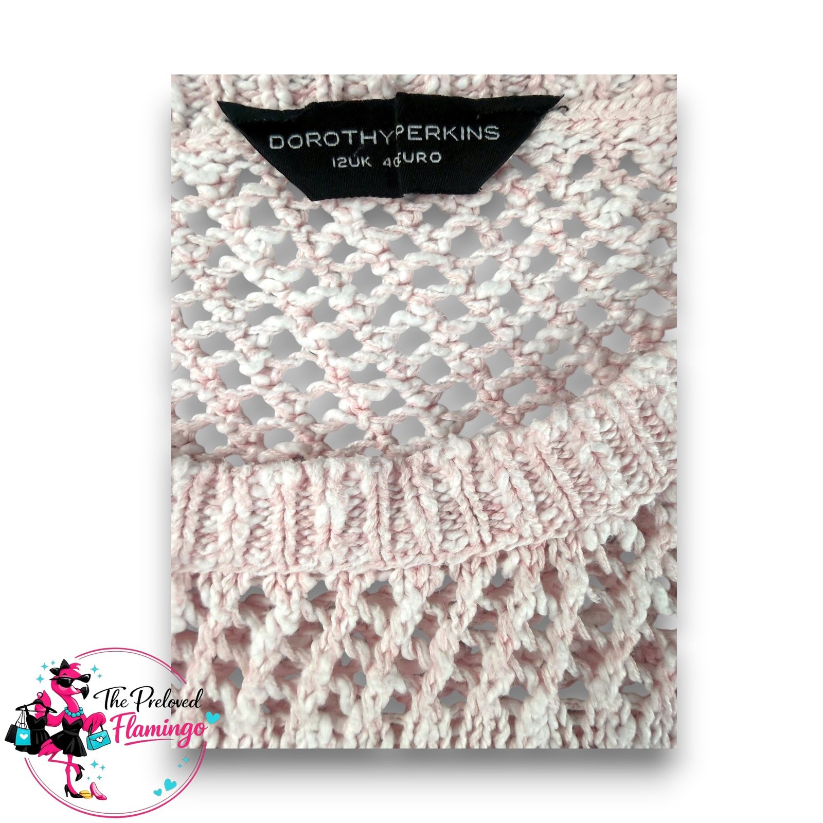 Dorothy Perkins Pink Open Knit Jumper UK 12 Lightweight Cotton Long Sleeve Summer Knit Top.