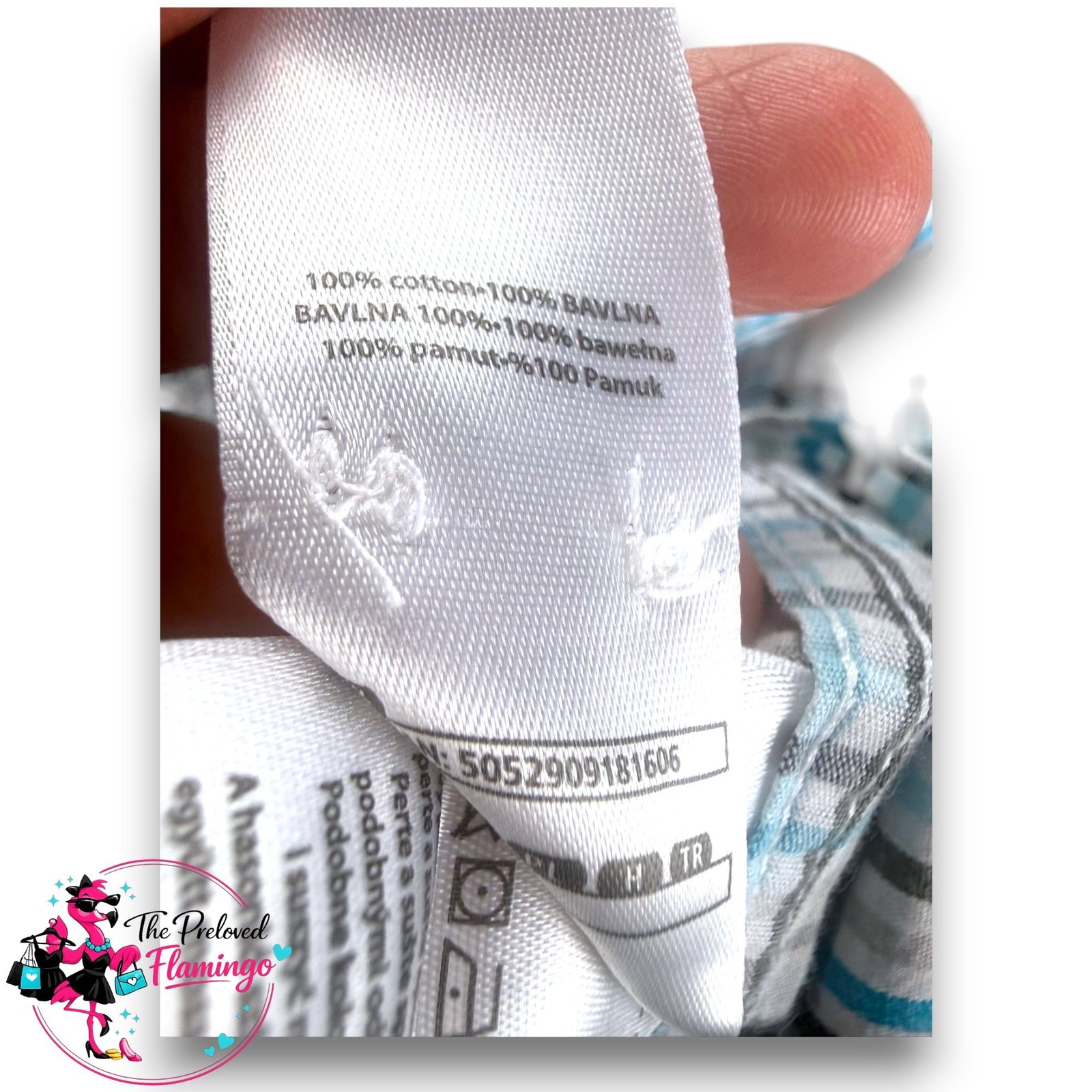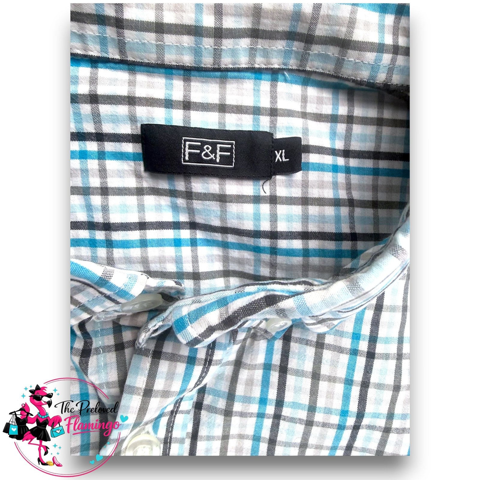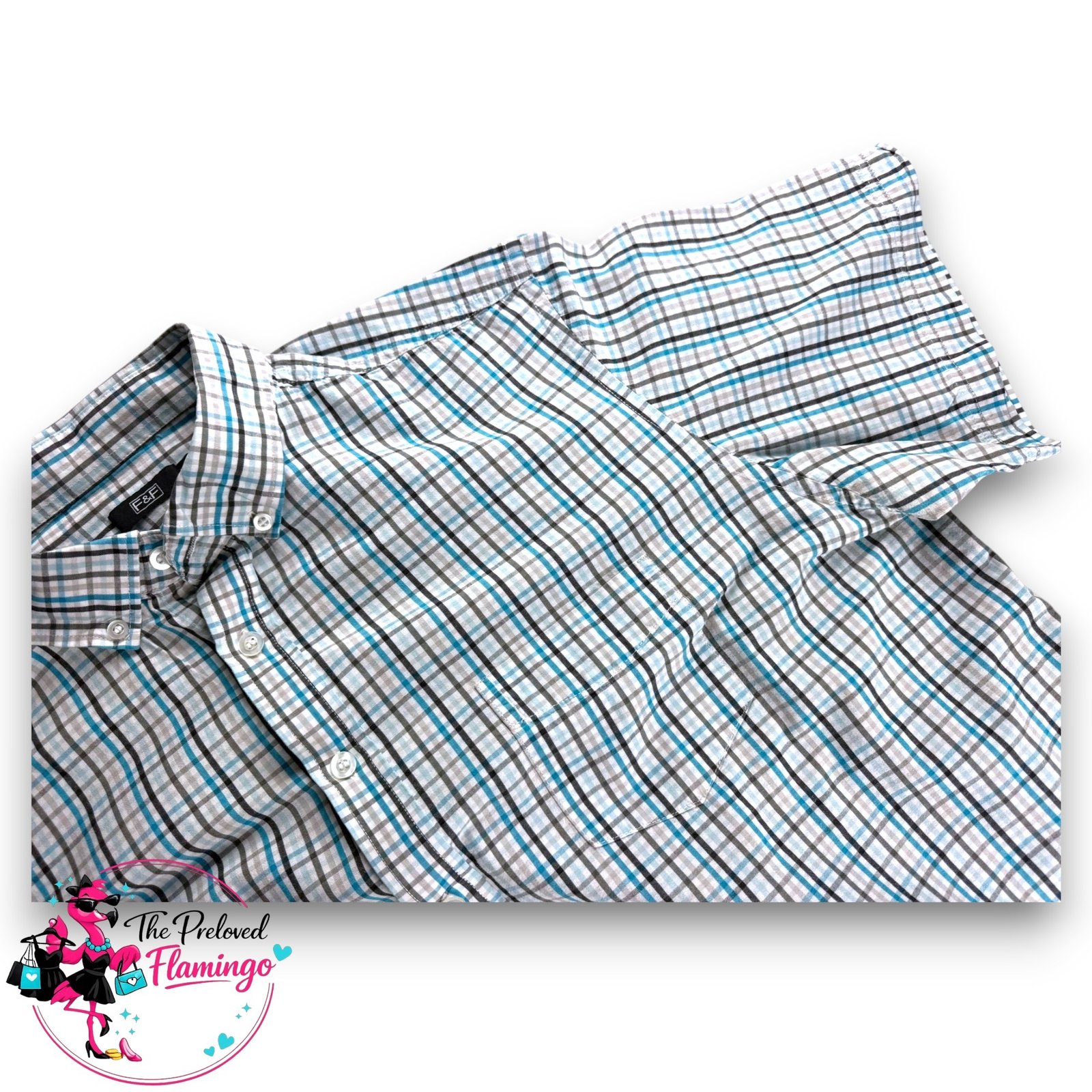 F&F Blue Grey Check Shirt Short Sleeve Button Up Cotton Casual Summer Shirt – Size XL.