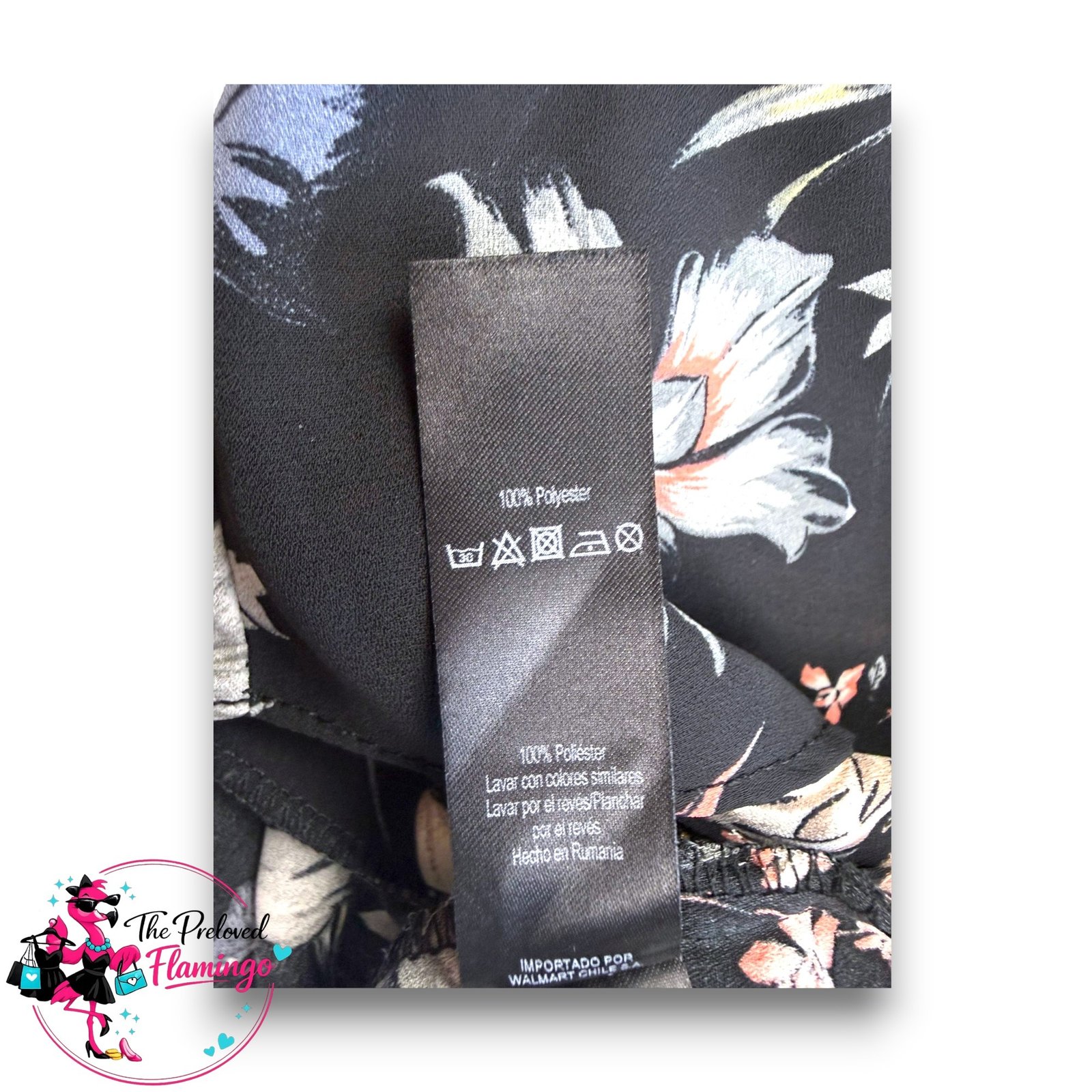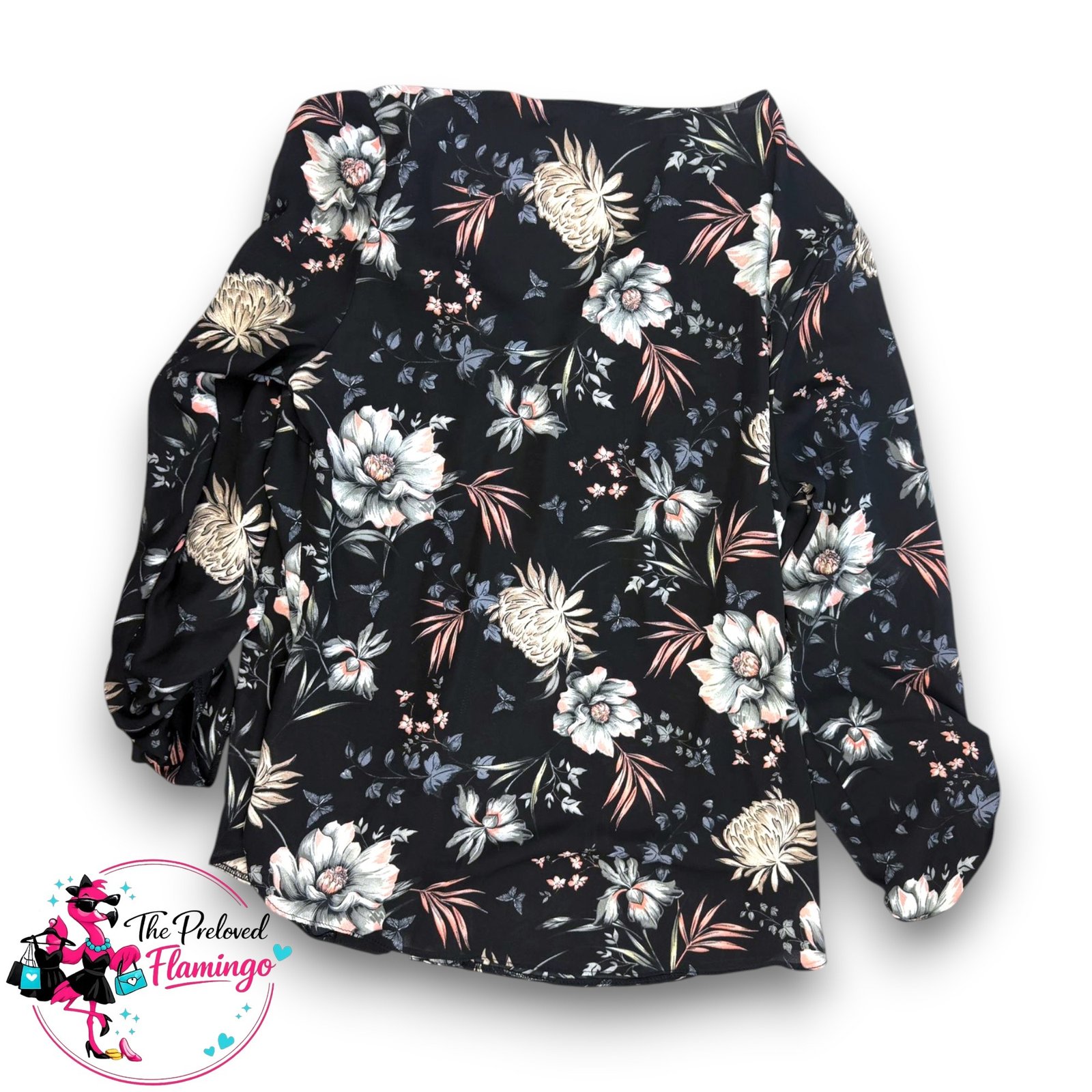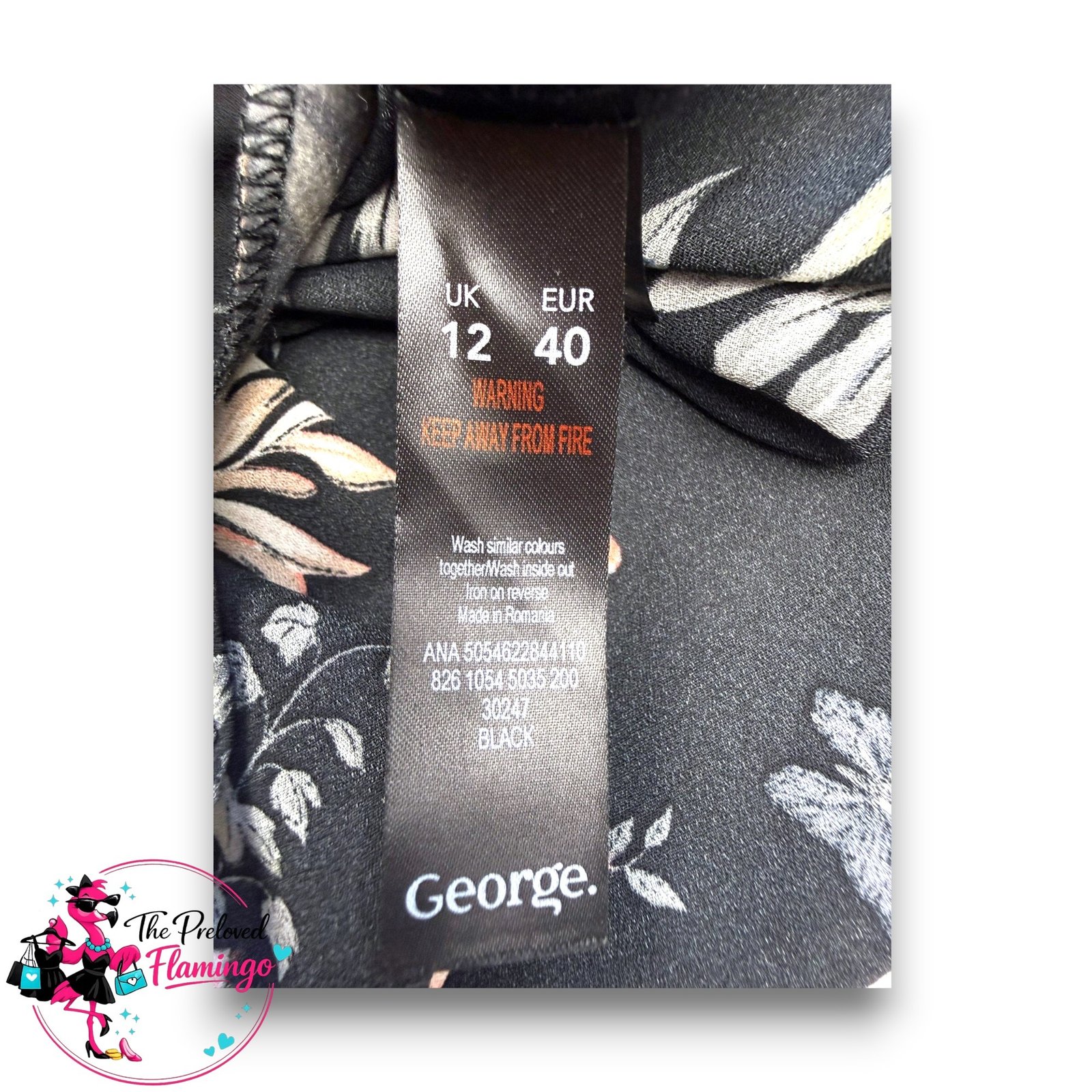 Colour: Black base with cream, green and soft pink floral print.