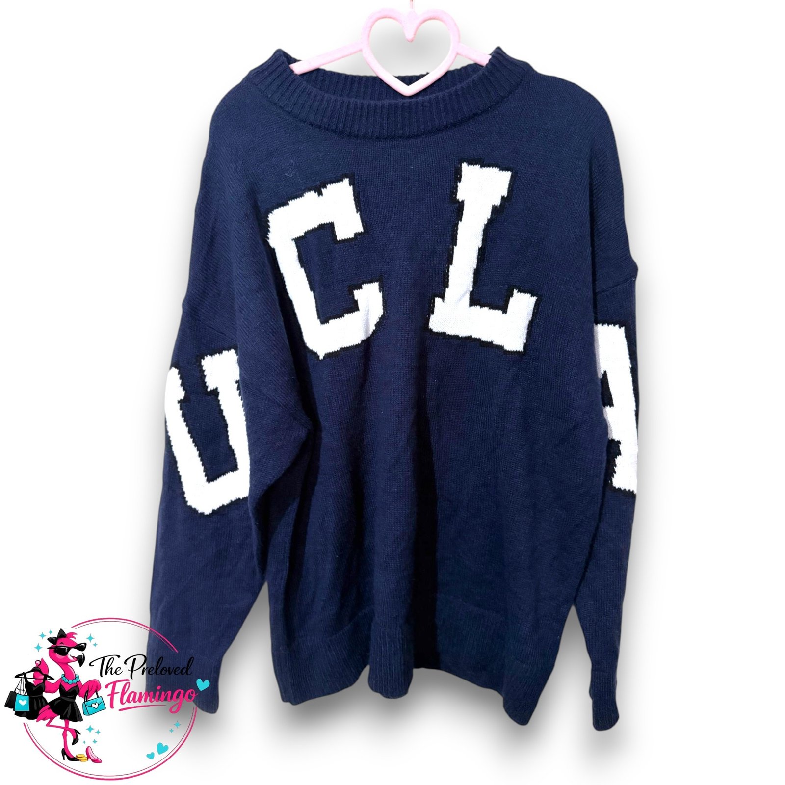 #hmstyle #uclajumper #varsitystyle #collegestyle #navyjumper #casualstreetwear #knitsweater #prelovedfashion #sustainablefashion #theprelovedflamingo