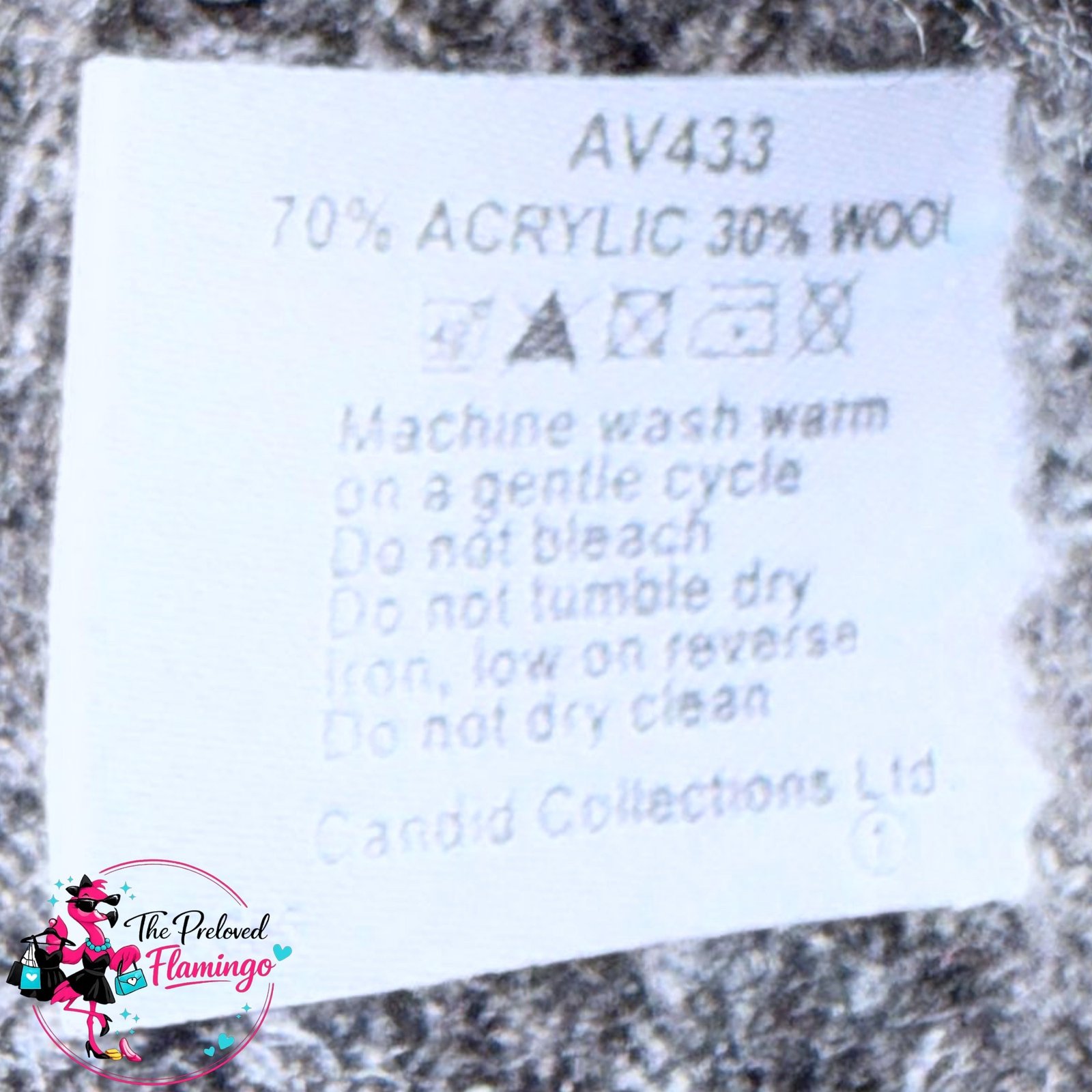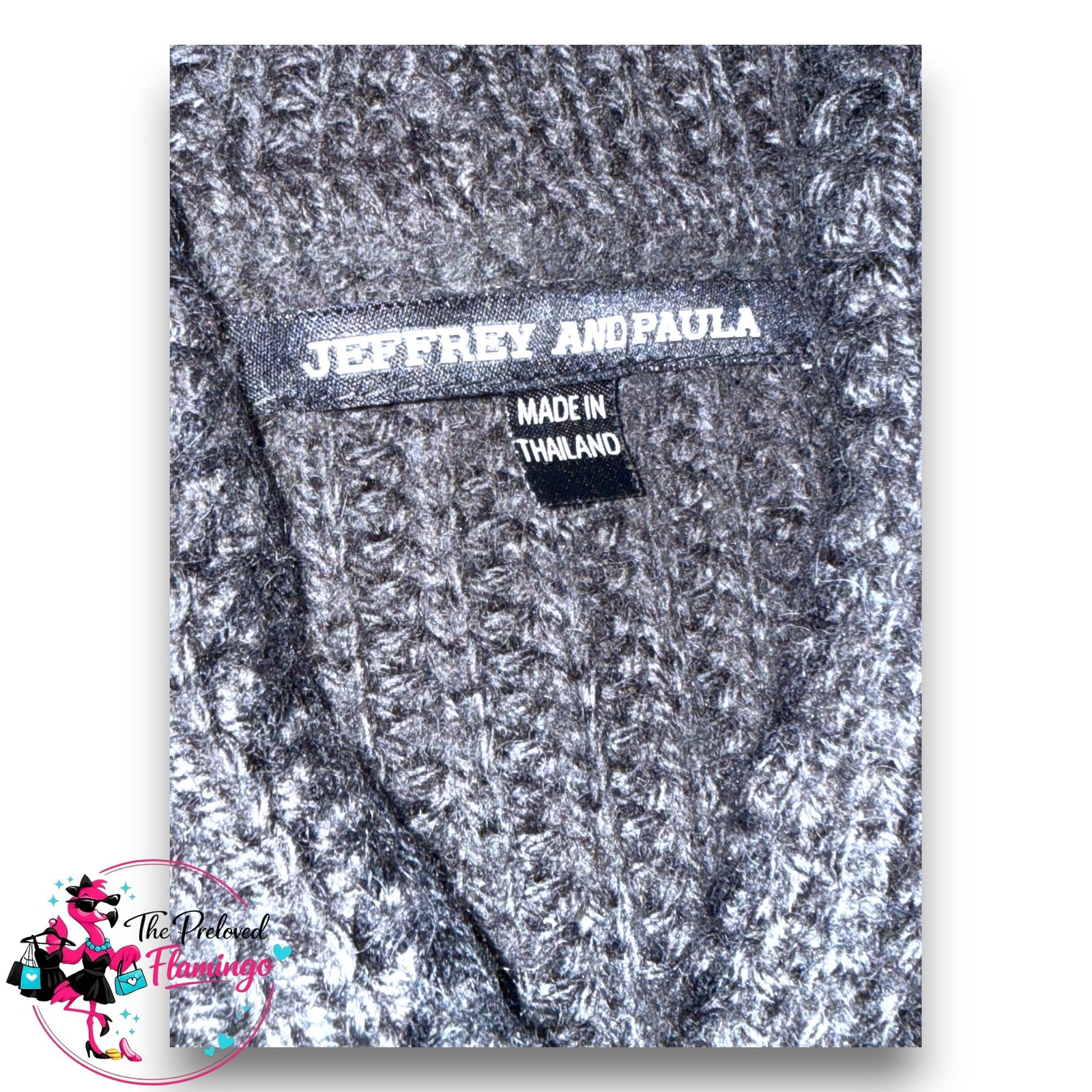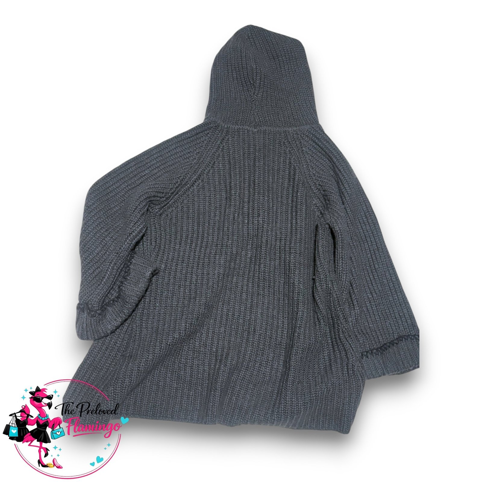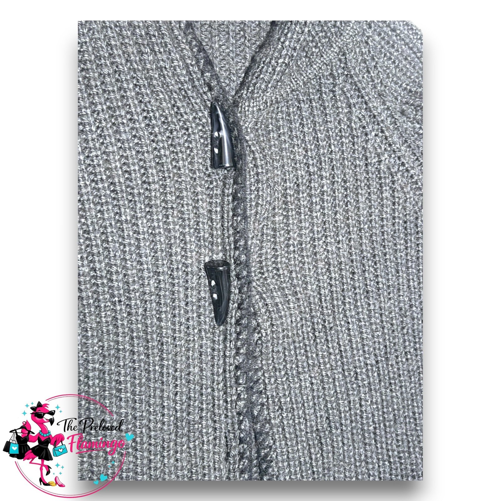 Jeffrey and Paula Charcoal Grey Wool Blend Chunky Knit Hooded Toggle Cardigan – Size 14. Fair used condition – please see the ‘Flaws’ section below for details.