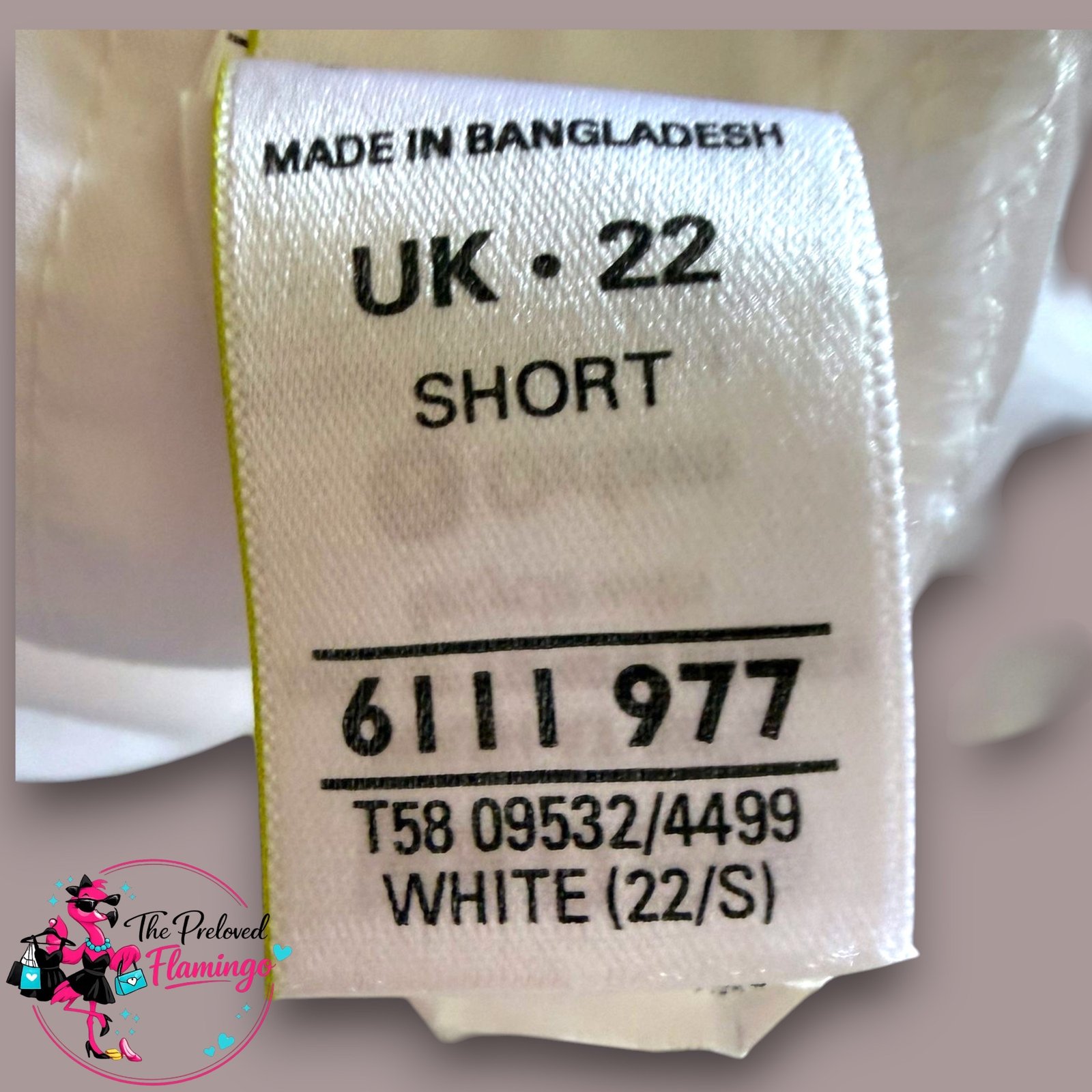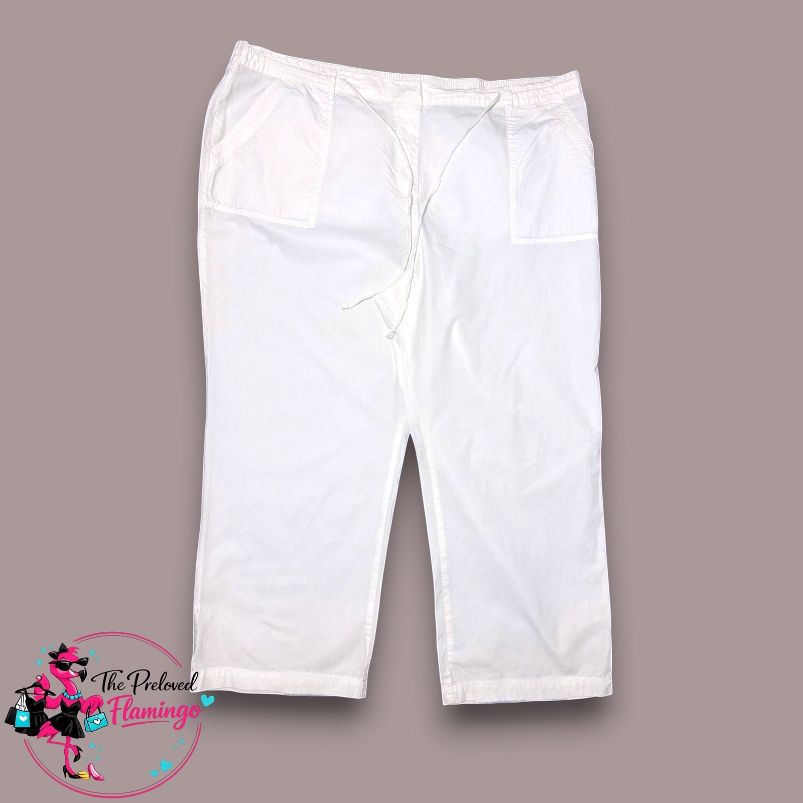 Marks & Spencer White Cotton Cropped Trousers UK 22 Short Petite Pull On Summer Pants.