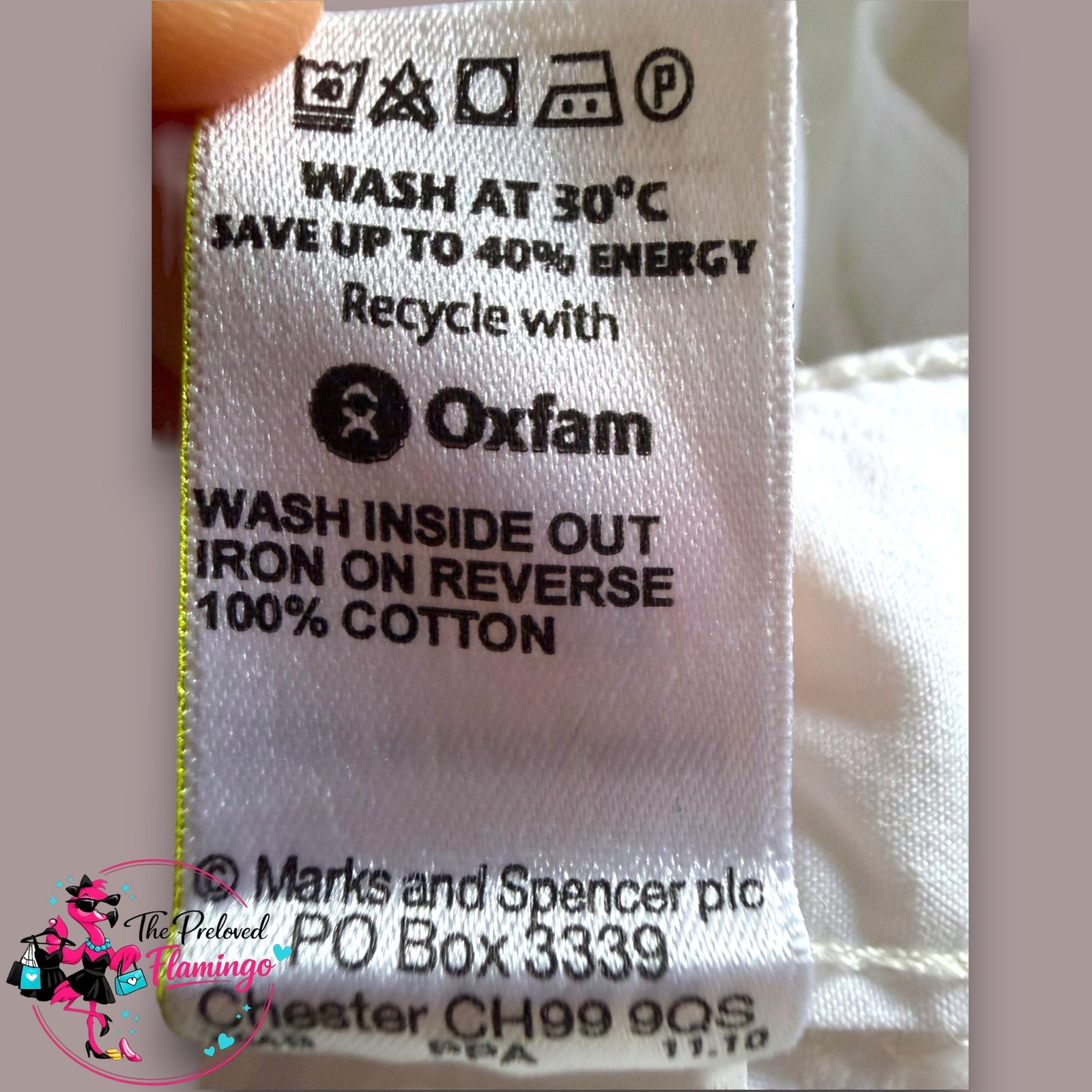 Marks & Spencer White Cotton Cropped Trousers UK 22 Short Petite Pull On Summer Pants