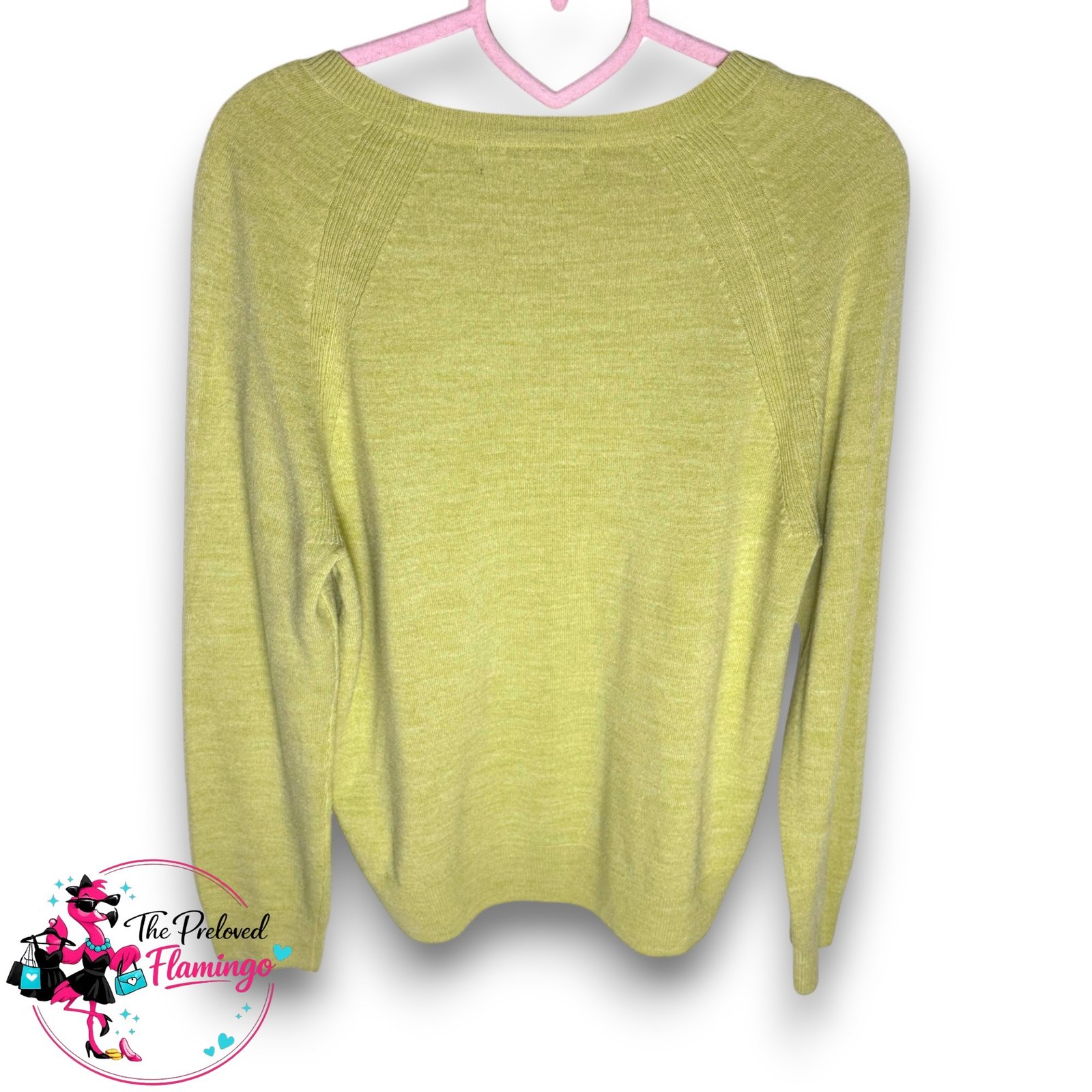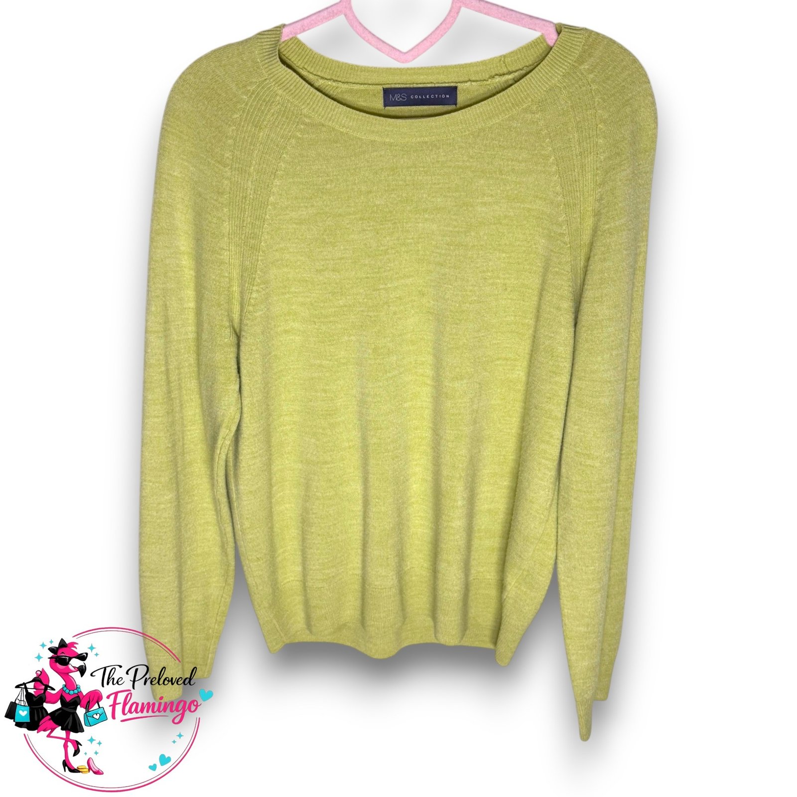 M&S Collection Lime Green Jumper Lightweight Knit Crew Neck Long Sleeve Sweater UK 12