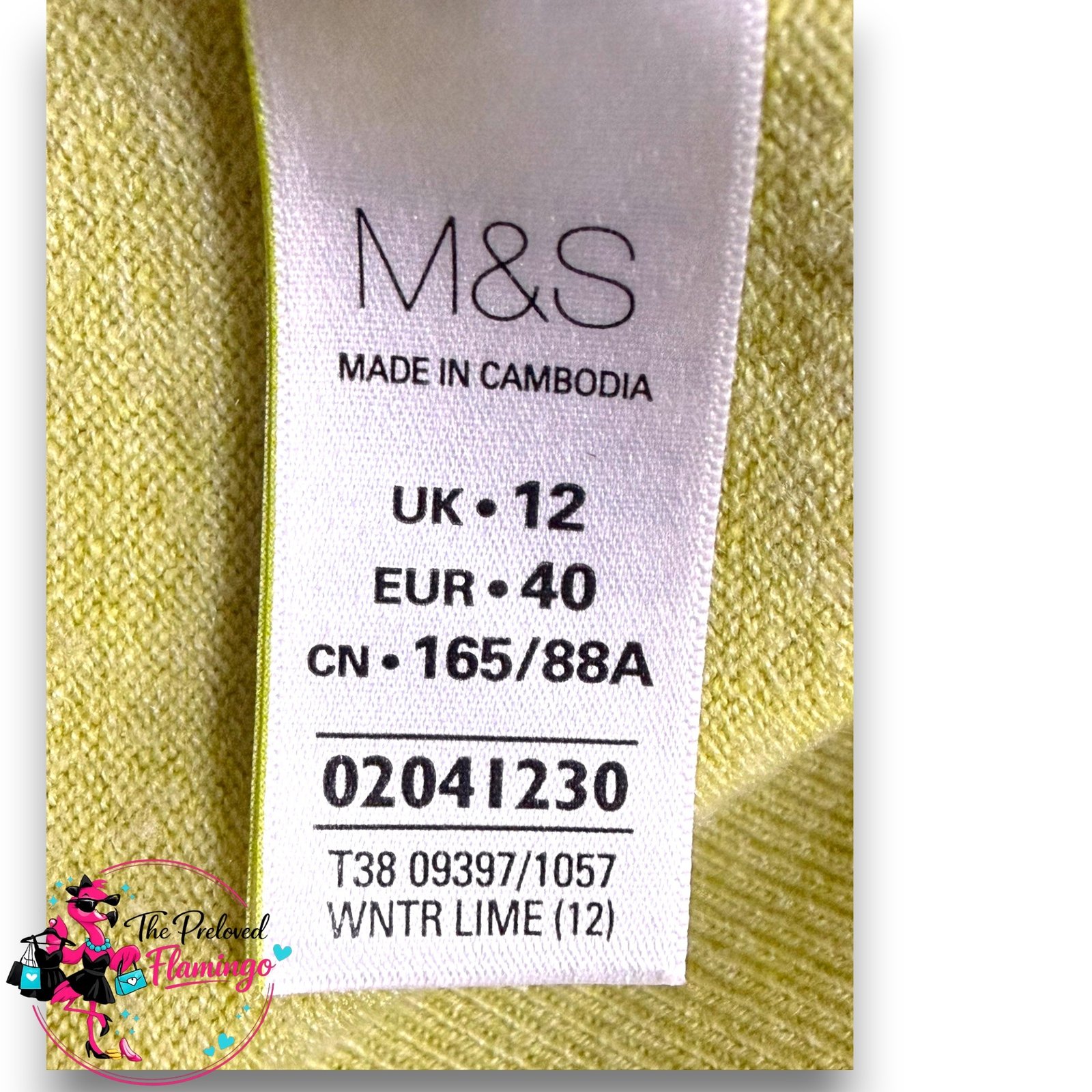 M&S Collection Lime Green Jumper Lightweight Knit Crew Neck Long Sleeve Sweater UK 12M&S Collection Lime Green Jumper Lightweight Knit Crew Neck Long Sleeve Sweater UK 12