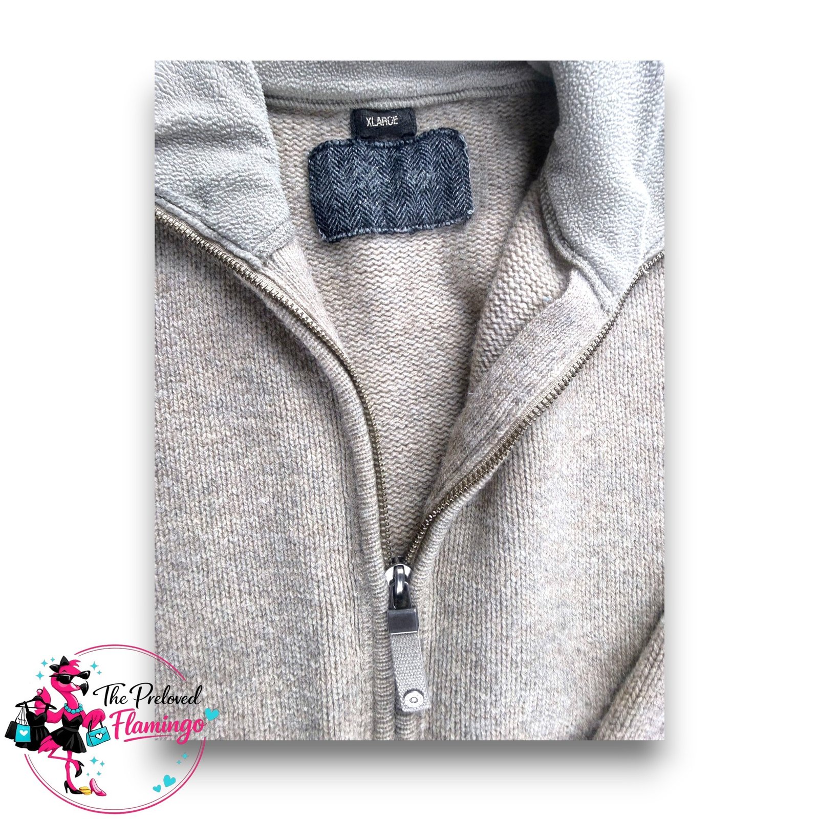 Great quality lambswool jumper in a neutral beige/oatmeal tone that’s easy to style with anything. Features a zip-up funnel neck so you can wear it open or fully zipped for extra warmth. Soft knit feel, warm without being bulky, perfect for layering through autumn and winter.