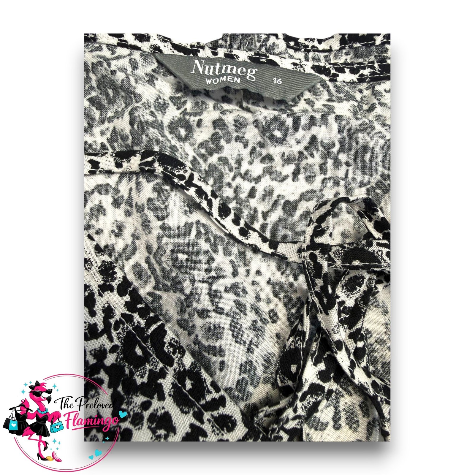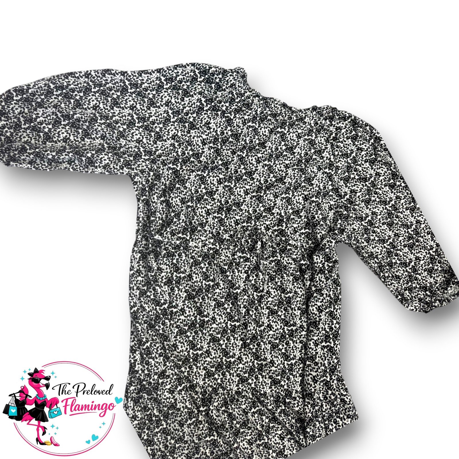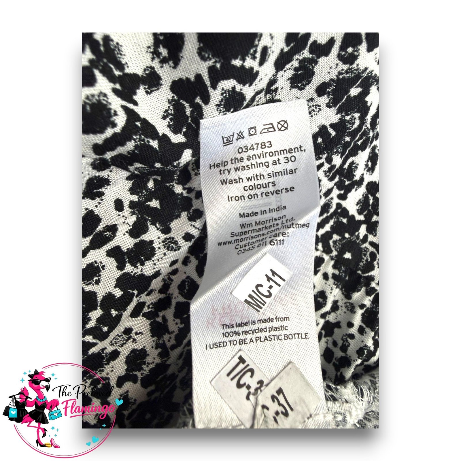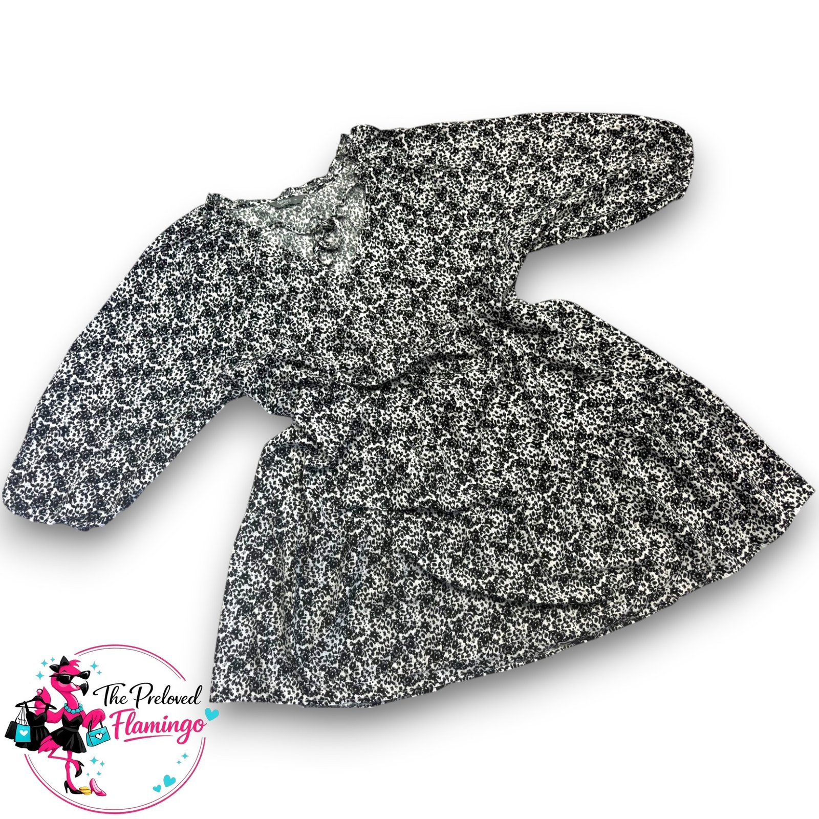 Nutmeg Black White Floral Smock Mini Dress Long Sleeve Tie Neck Boho Floaty UK 16