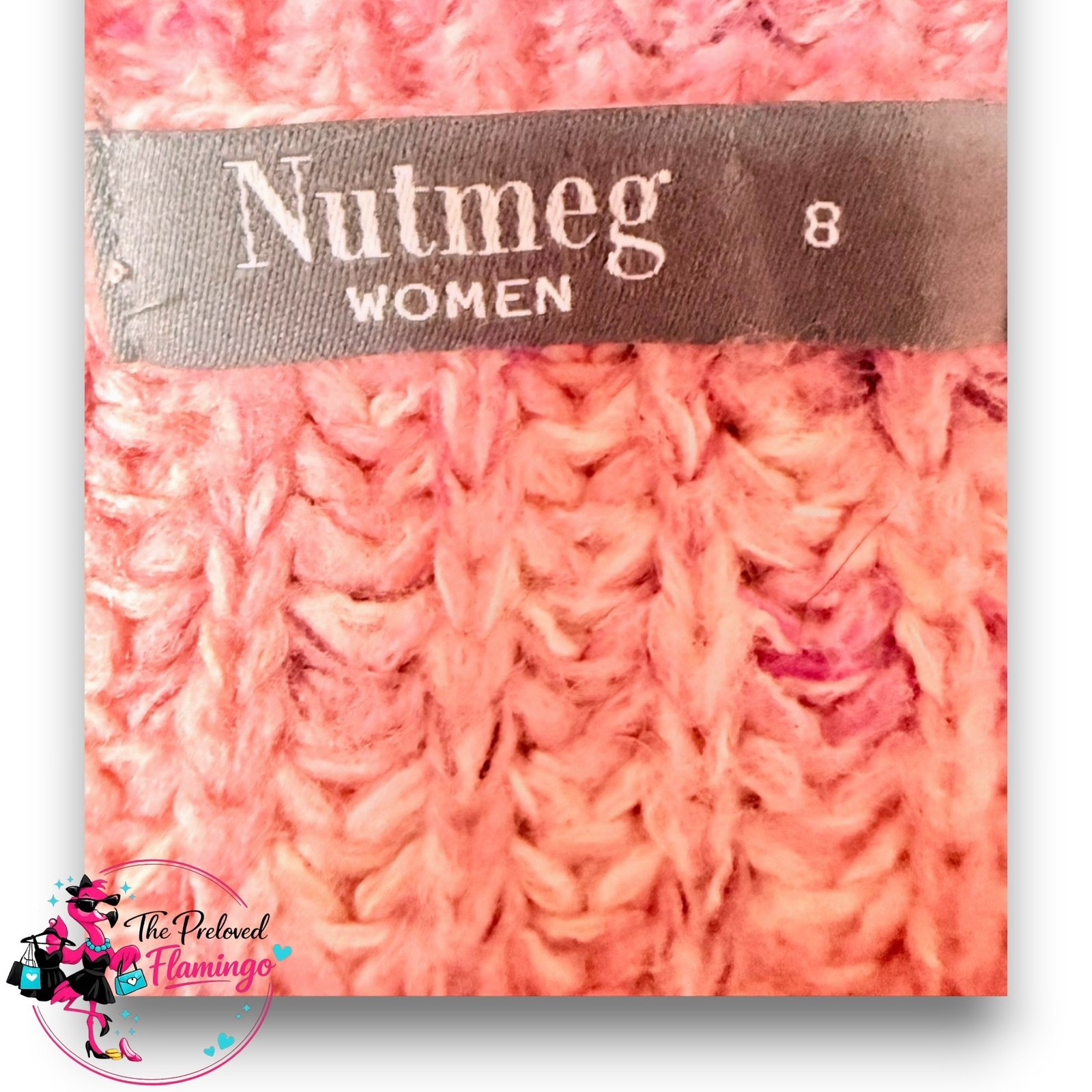 nutmeg jumper women, pink stripe jumper women, colour block jumper women, nutmeg knit sweater women, pink knit jumper women, womens jumper size 8, cosy knit sweater women, casual winter jumper women, pink sweater women, womens knitwear UK
