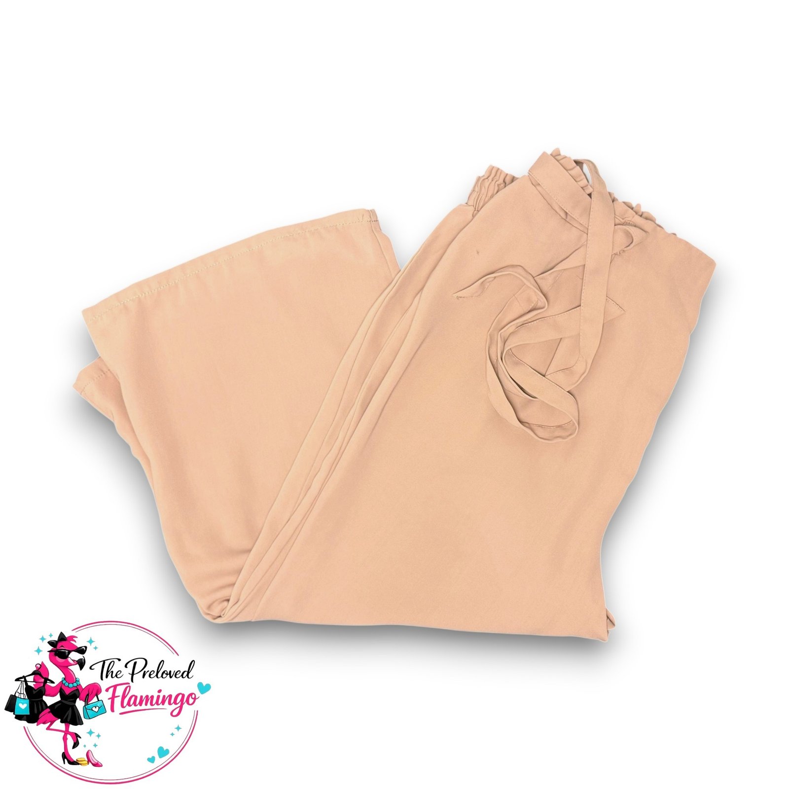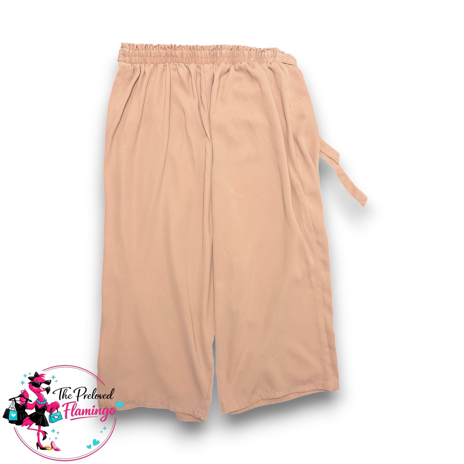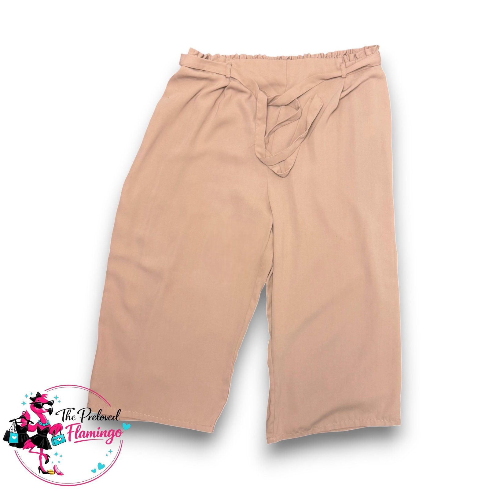 Primark Beige Pink Culottes UK 20 Wide Leg Cropped Trousers Elastic Waist Tie Belt Plus Size.