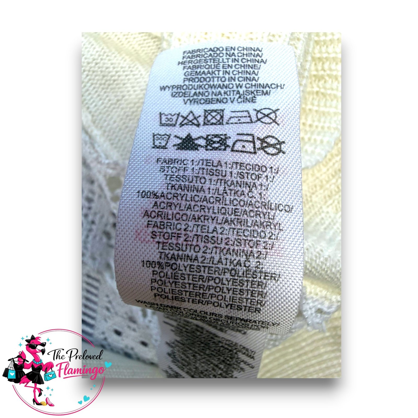 Material: Main 100% Acrylic. Lace panel 100% Polyester.