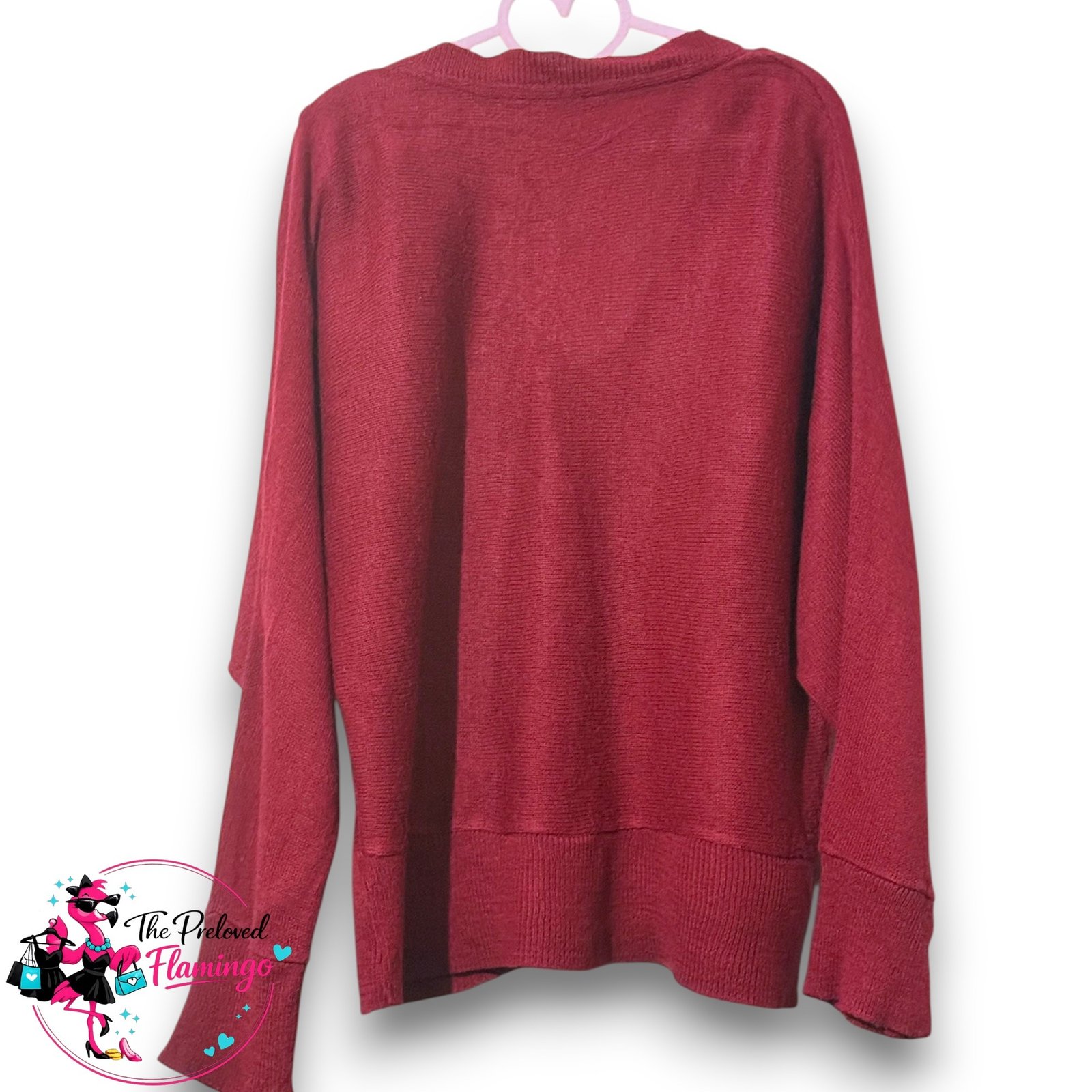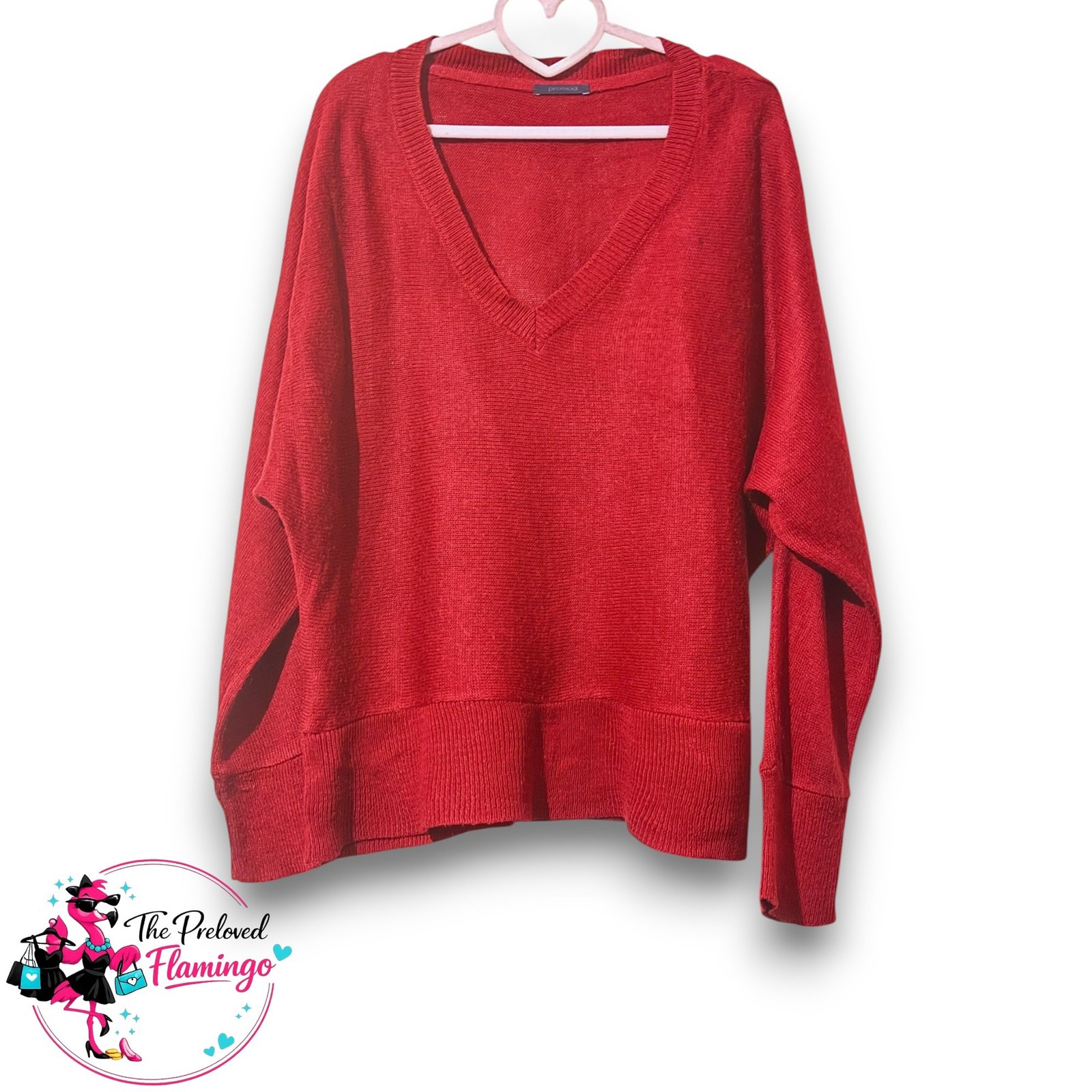 Promod Burgundy Deep V-Neck Oversized Relaxed Knit Jumper – Size L. Great condition – very well cared for with no stains, holes, or damage.