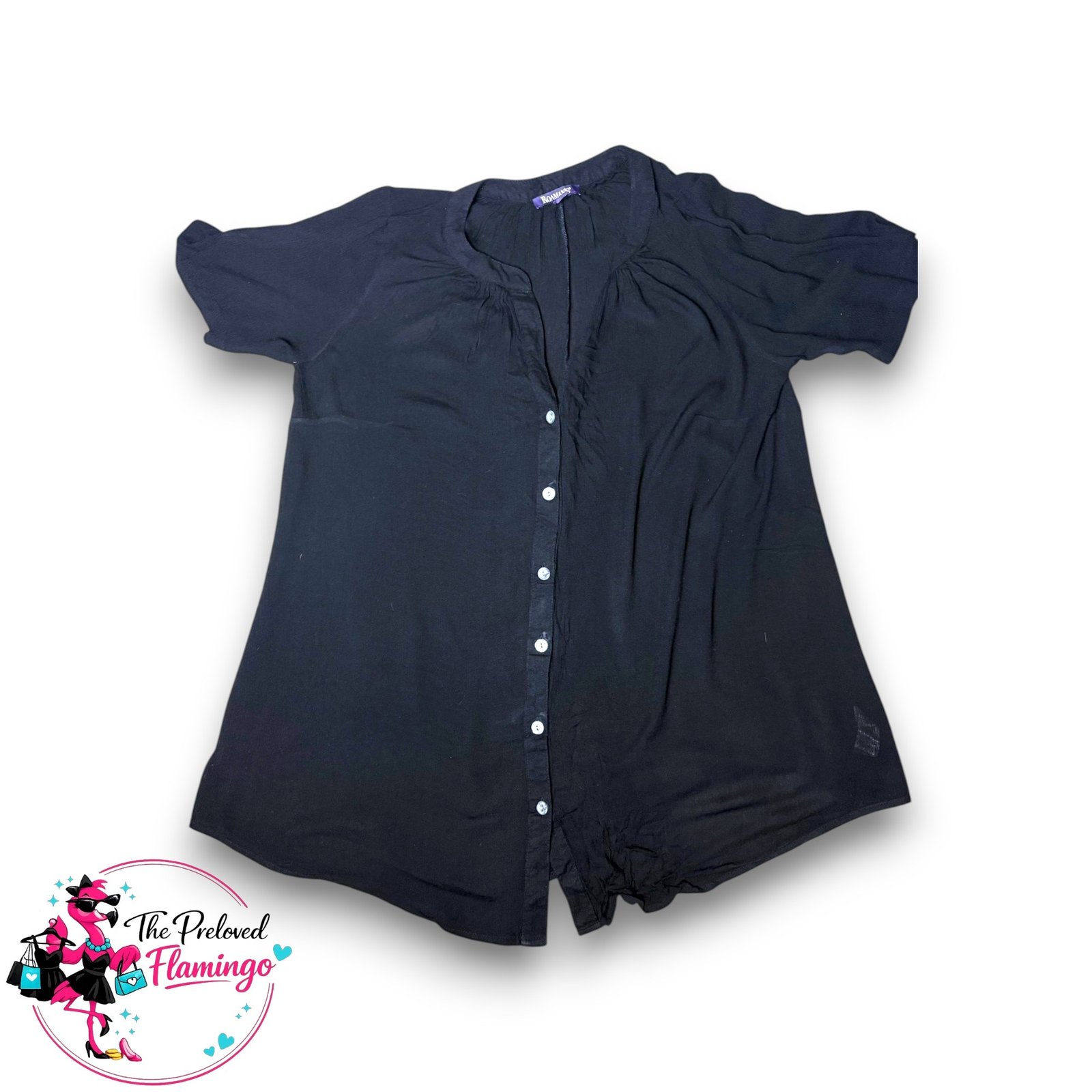 Roamans Black Button Front Blouse Short Sleeve Lightweight Floaty Relaxed Fit Plus Size – UK 12W BNWT