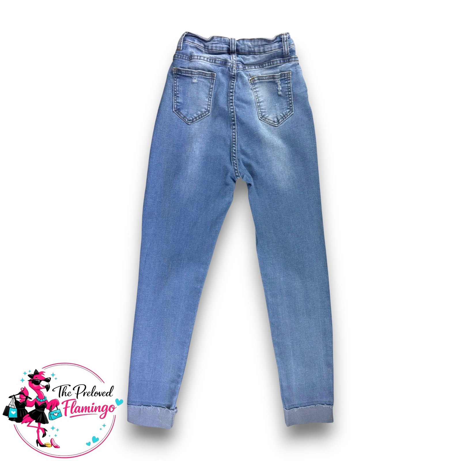 Shein Light Wash Distressed Skinny Jeans High Waisted Stretch Denim Ripped Cuffed – Size S.