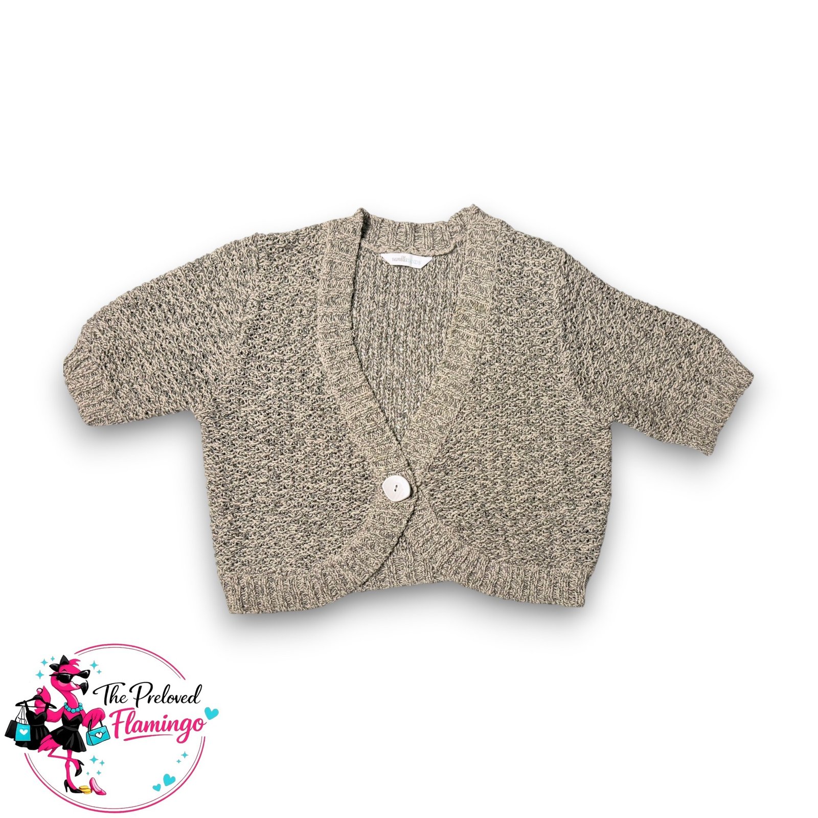 Vanilla Sands Beige Knit Cropped Cardigan Short Sleeve Button Front Size UK 16Vanilla Sands Beige Knit Cropped Cardigan Short Sleeve Button Front Size UK 16