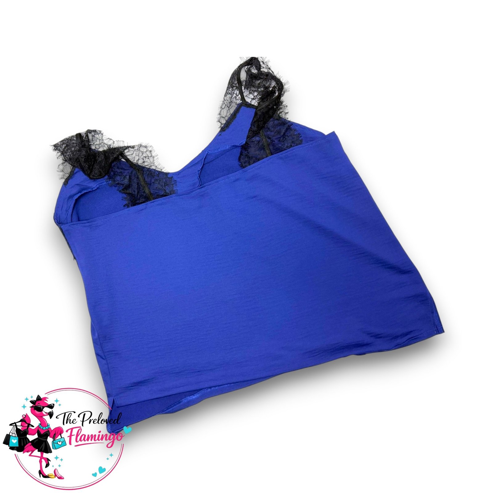 Womens Blue Lace Trim Cami Top Size XXL (UK 16) Sleeveless Vest Strappy Lightweight Camisole.