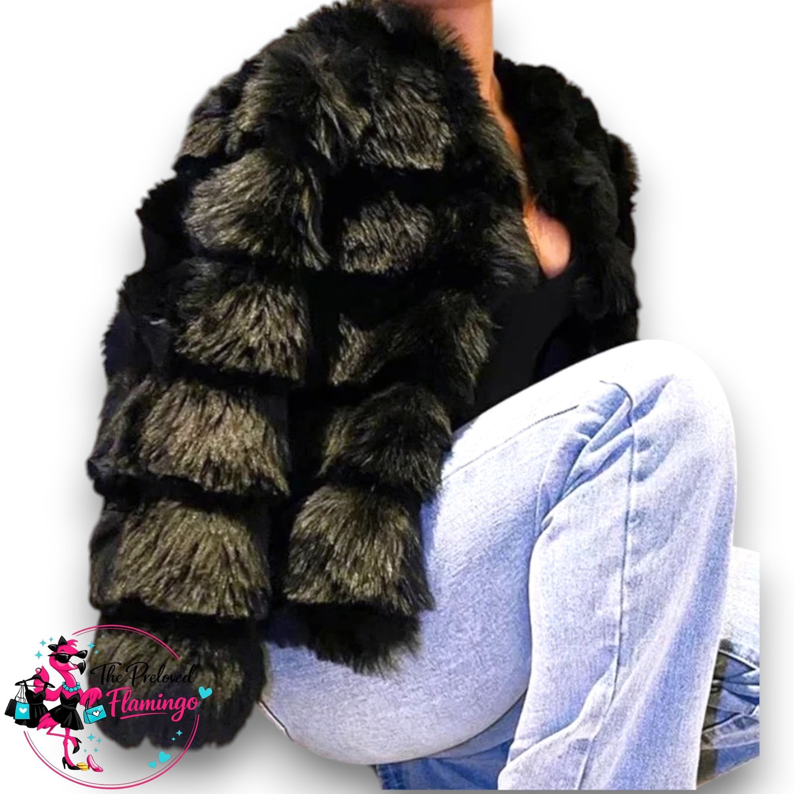 #FauxFurJacket #BlackFurCoat #Zana #CroppedJacket #WinterGlam #EveningJacket #PartyOutfit #PrelovedFashion #FauxFurCoat #WinterStyle #StatementJacket #ThePrelovedFlamingo